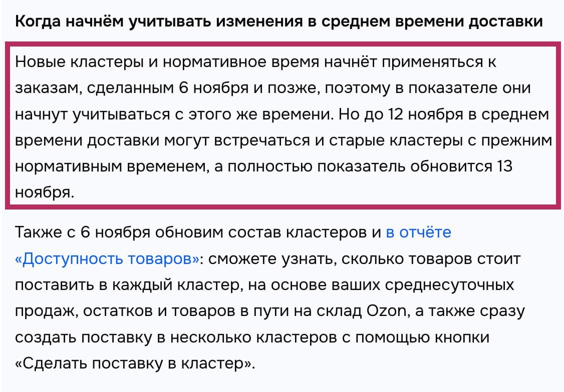 🗓 С 6 ноября на Ozon вступают в силу новые кластеры и пересчёт СВД (среднего времени доставки