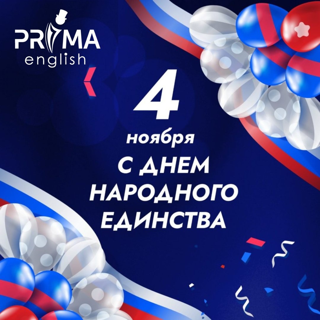 Дорогие друзья! ✨ Поздравляем с Днём народного единства! 🇷🇺 Сила России — в единстве нашего многообразия. Вместе мы преодолеваем любые трудности и создаём светлое будущее для нашей страны. Желаем вам и вашим близким здоровья, мира, счастья и успехов! С уважением, Команда «PRIMAENGLISH» 💎