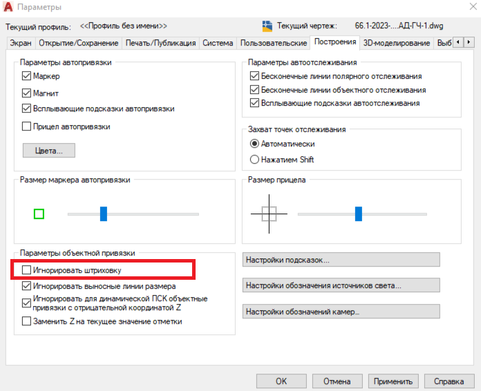 После этого AutoCAD снова будет привязываться к объектам штриховки.