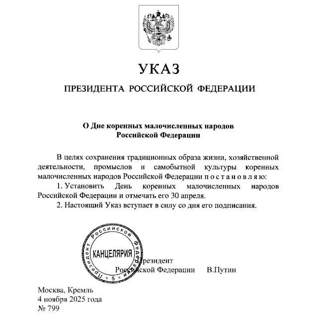 В ответ на пост 🟢Два новых праздника появились в России 30 апреля страна будет отмечать День коренных малочисленных народов, 8 сентября — День языков народов России. Указы президента вступили в силу сегодня. Первый праздник необходим для сохранения традиционного образа жизни, промыслов и культуры коренных народов страны. 💿Мы в MAX — подпишись! 🔴Подписаться на Севастополь в курсе