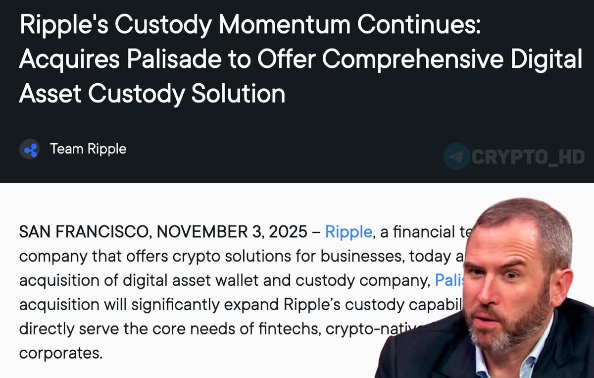 #xrp 👀 В Ripple за год потратили уже $4,000,000,000+ на поглощения. Компания объявила о покупке Palisade – разработчика кошельков и кастодиального хранения для криптоактивов. Расходы Ripple на поглощения в 2025 году: ➤ $1,25b – на прайм-брокера Hidden Road. ➤ $1b – на GTreasury, чтобы зайти на рынок корпоративных казначейств. ➤ $200m – на платформу стейблкоинов Rail. ➤ И теперь – Palisade (сумма не раскрывается). Зачем им Palisade? Ripple усиливает направление по безопасному хранению и управлению цифровыми активами для финтехов, криптокомпаний и крупных корпораций. Palisade предоставляет Ripple: • MPC-кошельки с быстрым API. • Хранение активов институционального уровня. • Кошелек уже совместим с #XRP, #SOL и #ETH. Ранее: Ripple Prime Crypto Headlines