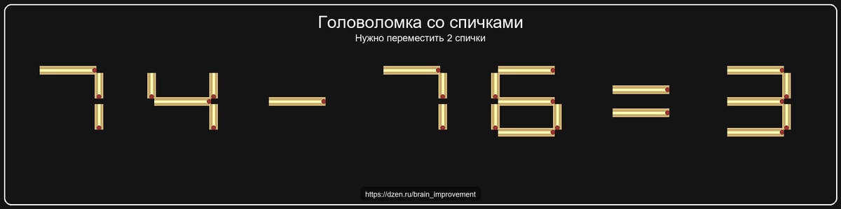 Готов проверить, насколько ты внимателен? 🧐 Нужно переместить 2 спички чтобы исправить равенство! 📝