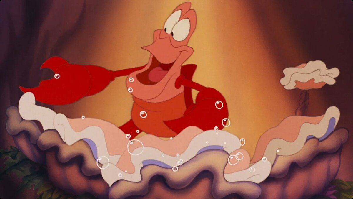 Немного поговорим о Себастьяне. Его полное имя Хоратайо Зэлониус Игнатиус Крустатайоус Себастьян. Первоначально персонаж должен был иметь английский акцент. Однако Говард Эшман, автор слов песен мультфильма, предложил использовать для персонажа карибский акцент. Именно это открыло двери для использования песенного номера в стиле калипсо. Это афрокарибский стиль музыки, образованный в Тринидаде и Табаго в 20 веке. Собственно, из-за этого родился номер «Под морем» в исполнении Себастьяна, за который мультфильм отхватил «Оскар».