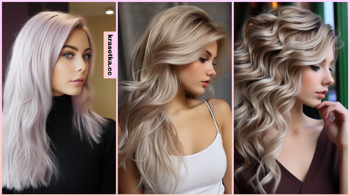 Этот изысканный и утончённый цвет волос отличается прохладными серебристыми тонами с лёгким оттенком золотистых бликов, создавая изящный и пленительный образ. Серебристо-дымчатый блонд излучает роскошь и очарование, что делает его популярным выбором для тех, кто хочет выглядеть по-настоящему шикарно.