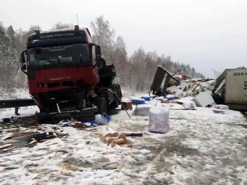 На записи с видеорегистратора видно, что один из грузовиков на заснеженной скользкой дороге внезапно потерял управление. Из-за этого фура выехала на встречку, где столкнулась с другим большегрузом. От удара кабину потерявшего управление автомобиля превратило в груду искореженного маталла, а фура на встречной полосе улетела в кювет. При этом полуприцеп фуры перегородил трассу. За ней ехали еще два большегруза с полуприцепами, им тоже не удалось избежать столкновения. Читайте также Сильные землетрясения за всю историю Иркутска в воспоминаниях очевидцев