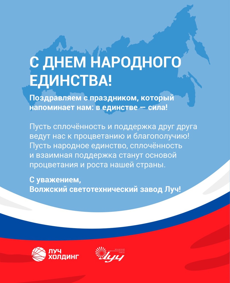 💡 Дорогие коллеги, партнеры, друзья! Поздравляем вас с Днем народного единства! 🇷🇺✨ Этот праздник напоминает нам о силе сплоченности, патриотизма и ответственности за будущее нашей страны. Только вместе, сохраняя традиции и поддерживая друг друга, мы можем достигать новых высот и делать Россию сильнее! Пусть в наших сердцах всегда живет гордость за Родину, взаимное уважение и стремление к созиданию! Желаем вам мира, добра, благополучия и уверенности в завтрашнем дне!