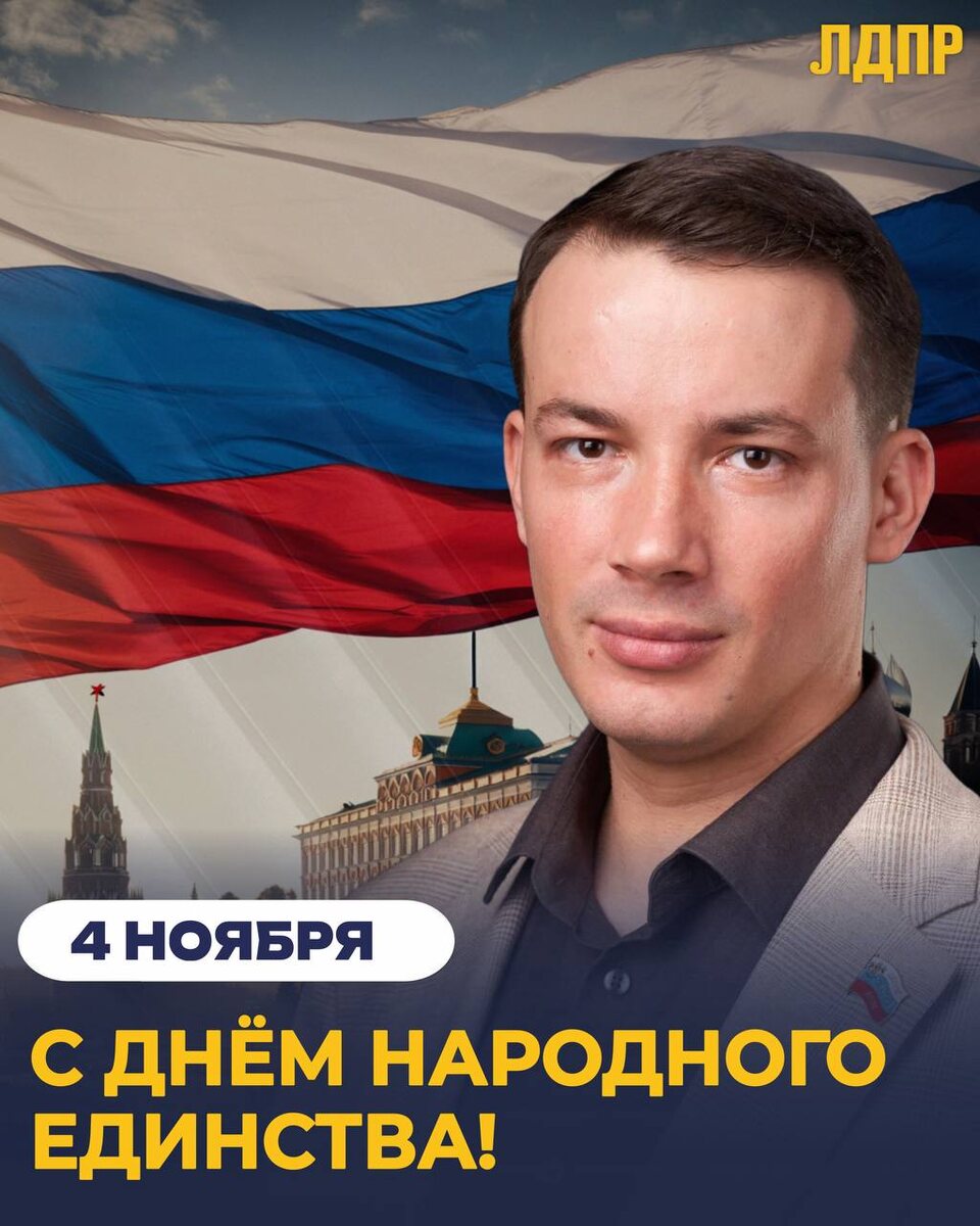 Руслан Федоров поздравил костромичей с Днём народного единства 🇷🇺 Этот праздник – символ нашей общей силы и непоколебимой веры в будущее России, уверен руководитель ЛДПР в Костромской области. Он напомнил, что Основатель партии Владимир Жириновский всегда говорил: только в единстве наша страна может вернуть заслуженное уважение на мировой арене. «Помните, настоящее единство – это не просто слова, это готовность поддерживать друг друга, вместе преодолевать трудности и строить сильную, процветающую Россию. Это мощь, перед которой бессильны любые внешние угрозы, и залог того, что Россию будут уважать и внутри страны, и за её пределами. Желаю каждому из вас крепкого здоровья, благополучия и уверенности в завтрашнем дне. Пусть в ваших сердцах живёт любовь к Родине, гордость за свой народ и стремление сделать Россию ещё лучше!» - пожелал депутат. ЛДПР Кострома🕊