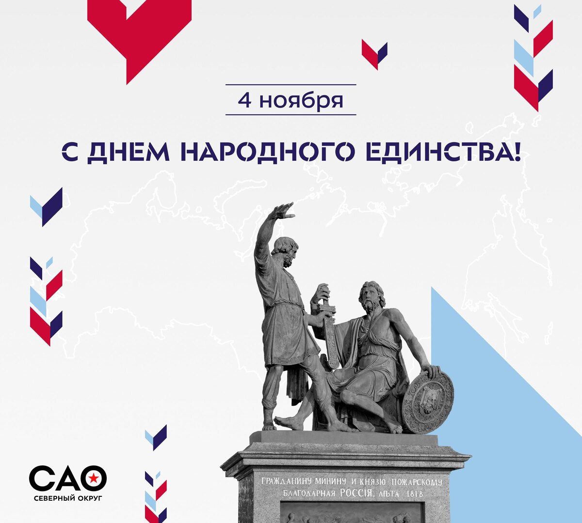 🇷🇺 С Днём народного единства! Праздник учреждён в память об освобождении Москвы от польских интервентов народным ополчением под предводительством Минина и Пожарского в 1612 году. Этот день напоминает о героических страницах отечественной истории и о том, что сила России — в единстве её народа. Ведь именно сплочённость и взаимная поддержка помогают нам достигать самых высоких целей. ❤️ Пусть в наших сердцах всегда живёт взаимное уважение и готовность поддержать друг друга. Единство — это не просто слово, это наша сила. С праздником! 🖥 Подписывайся – Префектура САО