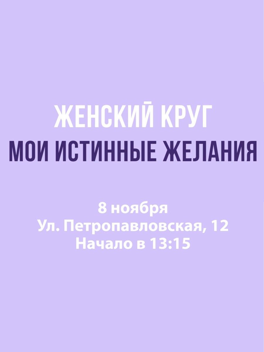 Напоминаем о новой встрече женского круга «Мои истинные желания», которая пройдет 8.11