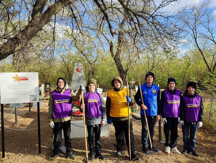 Юные волонтеры приняли активное участие в процессе уборки территории воинского захоронения — братской могилы, очистив её от опавшей листвы. Данный акт имеет глубокий символический смысл, отражающий не только заботу о физической сохранности мемориала, но и стремление сохранить историческую память о подвигах предков. Акция «Дон помнит!» стала ярким примером реализации гражданской инициативы, направленной на формирование у молодежи чувства патриотизма, уважения к историческому наследию и осознания важности сохранения памяти о героическом прошлом нашей Родины.