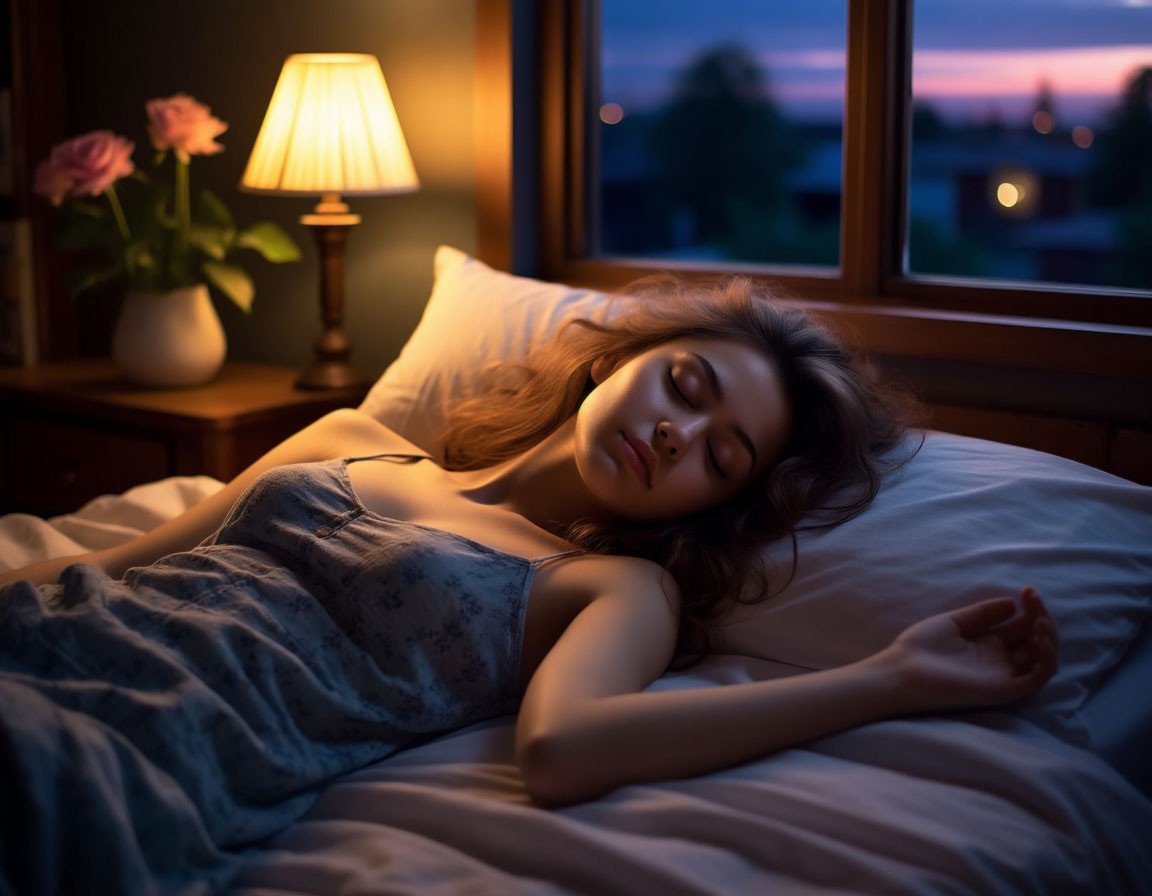 молодой женщины.. Она лежала на спине, легкое одеяло сползло вниз под бедро, открыв обнаженные груди и часть бедра.. На стене напротив, горел ночник, который светил в потолок и мягкое освещение половины комнаты и ее тела покрывало эту часть комнаты..