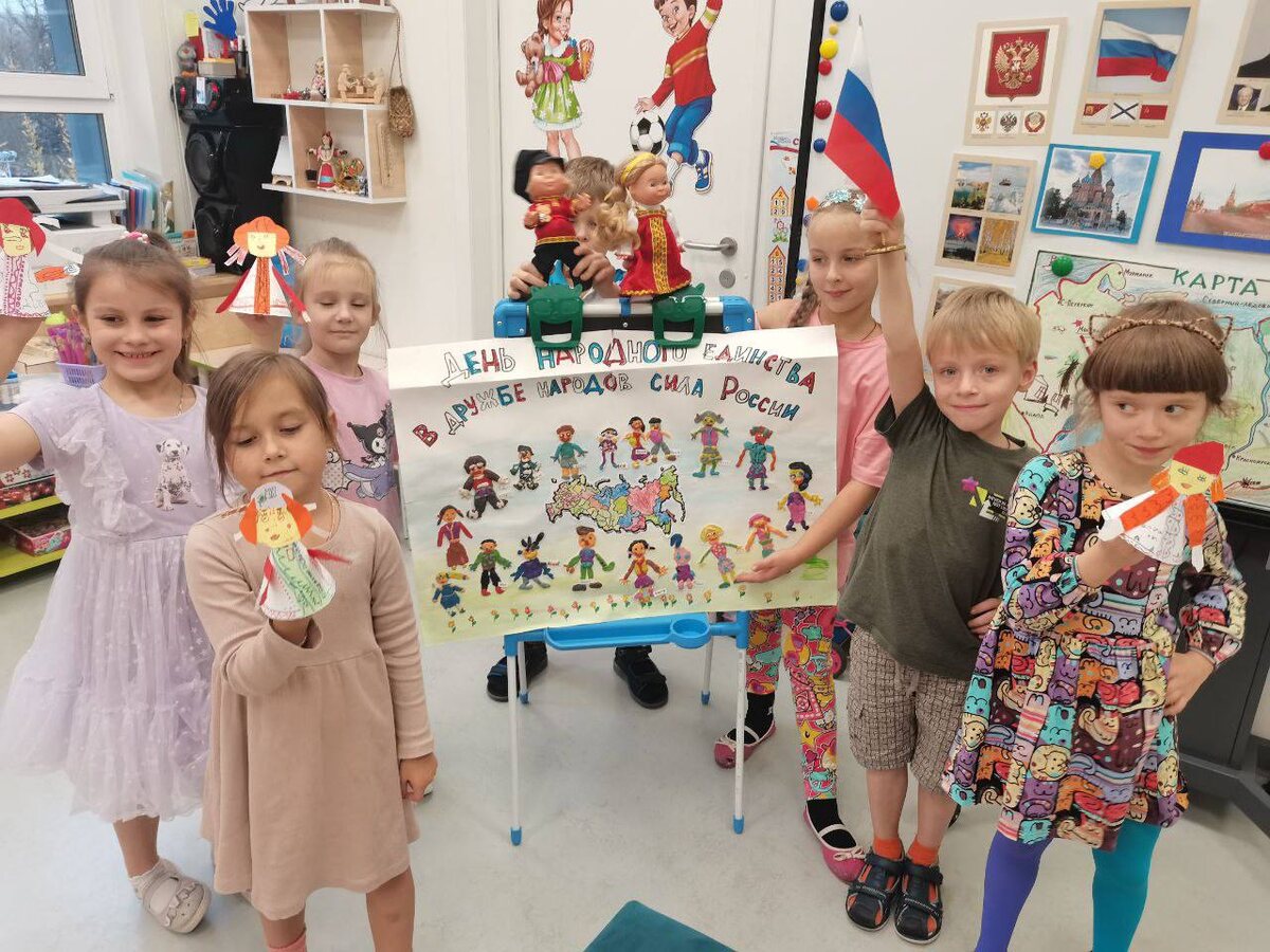 Малыши познакомились с историей праздника, узнали о важности дружбы и единства. А ещё мастерили плакаты, разучивали песни и стихи о Родине и играли в народные игры.