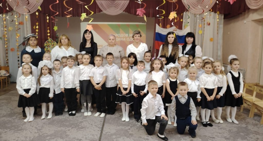 Сегодня для России нет более важной темы, чем патриотизм. Старинная мудрость напоминает нам: «Человек, не знающий своего прошлого, не знает ничего». Именно поэтому в нашей стране есть такой важный праздник – День народного единства, который дети должны знать с раннего возраста. В преддверии праздника в детском саду «Жемчужинка» прошли мероприятия, посвященные ему. Воспитанники узнали о том, как велика и красива наша Родина, как богата событиями ее история, какие народы населяют нашу необъятную страну. Дети вспомнили государственные символы, познакомились с играми, костюмами и фольклором разных народов, сделали плакат «В единстве наша сила», прослушали Гимн нашей великой России. Педагоги постарались донести до малышей значение слов «дружелюбие» и «взаимовыручка», важность желания помогать друг другу, быть терпеливыми и уважать интересы других. Они выяснили, что сила России в том, что люди разных национальностей живут в стране дружно, и все они одинаково любят свою Родину – Россию! Мы на