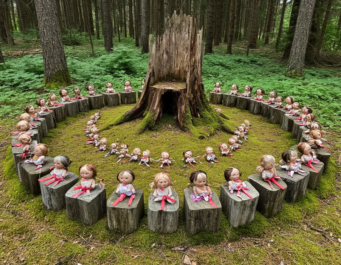 И вот я вышел на поляну. Она была круглой, неестественно правильной формы, будто ее вырезали ножом. В центре стоял старый, почти сгнивший пень, похожий на трон. А вокруг него, на земле, лежало то, от чего кровь застыла в жилах.
