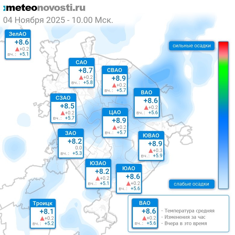 В 10:00 в Москве было от +7.9°C до +9.1°C, средняя температура +8.6°C #погода #Москва #осень #температура #4ноября #вторник Перейти на сайт Прогноз погоды на 14 дней