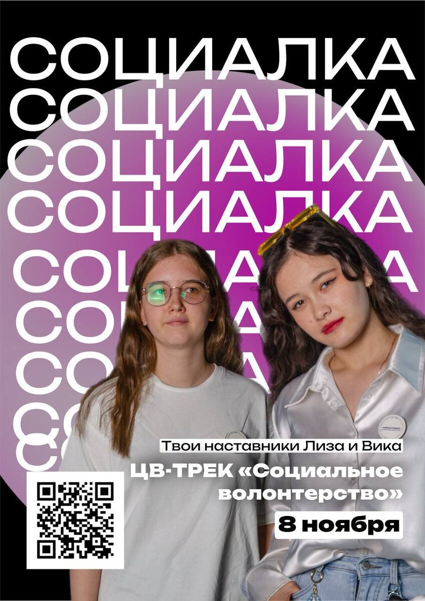 ЦВ-трек «СОЦИАЛЬНОЕ ВОЛОНТЁРСТВО»🍒 Приглашаем попробовать себя в социальном волонтёрстве и оказать помощь тем, кто в ней нуждается. 🩹 Дата,время и место проведения: ▫️8 ноября ▫️10:00-17:00 ▫️ВВГУ(Студпространство в 8 корпусе) Переходи по ссылке и стань частью команды, которая меняет жизни людей к лучшему! Центр волонтёров ВВГУ уже ждёт тебя! ⭐️