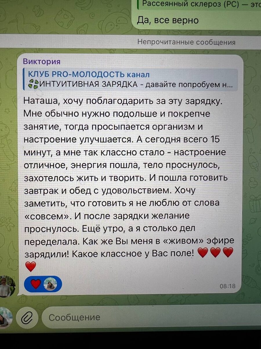 💚 ЖИВЫЕ ЗАРЯДКИ ОНЛАЙН вернулись в пространство моего клуба! ✨ 6,5 лет назад, когда клуб только появился, мы встречались утром на ковриках все вместе и занимались каждый день. Так продолжалось 3 года, пока ситуация в мире и моя жизнь, и профессиональная деятельность не внесли свои коррективы — и мы стали заниматься курсами и программами по темам месяцев. 📚 ТЕМЫ МЕСЯЦЕВ отлично прижились и с каждой становятся всё глубже и серьёзнее (с каждым моим новым образованием, обучением, опытом). Сейчас вообще докатились до управления биологическим возрастом и эпигенетики 🧬🧐 🔥 И тут вдруг у меня снова возникло желание вернуть утренние живые уроки по 15 минут — но с колоссальным энергетическим зарядом! И мы начали! 🌞 Очень круто, когда можно заниматься в жизни тем, что любишь, что зажигает, повышает жизненную энергию и даёт настоящий вкус жизни 💚 🙌 Участницы клуба — спасибо вам, что разделяете эту радость жизни со мной! 🔥