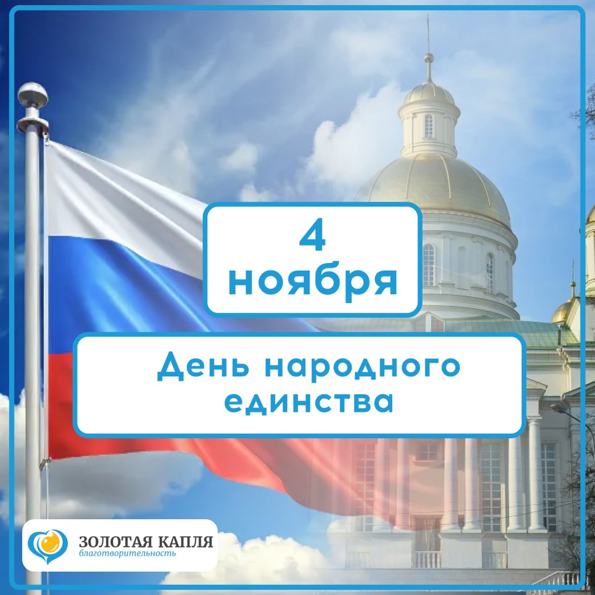 Дорогие друзья, партнеры и подопечные! Поздравляем вас с Днем народного единства! 💛 Этот праздник напоминает нам о главном: любые трудности можно преодолеть, когда мы вместе. Для нашего фонда «Золотая капля» единство - это не просто слово. - Это десятки людей, которые помогают детям с инвалидностью - Это сотни пожертвований, которые меняют жизни детей - Это тысячи ваших добрых слов, которые поддерживают семьи Сегодня мы хотим сказать спасибо каждому из вас. Спасибо, что остаетесь с нами, вносите свой вклад и верите в наших подопечных. Вместе мы создаем настоящее единство добра, заботы и надежды.