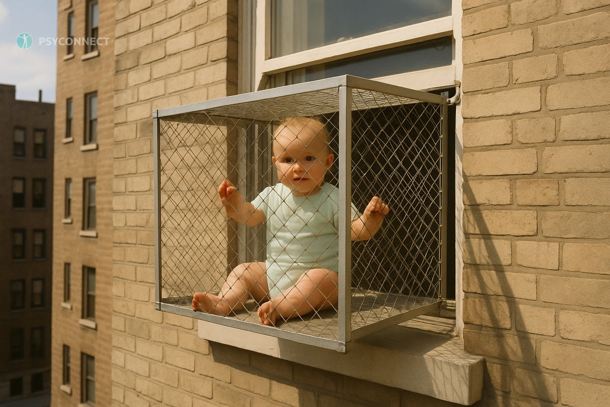 В 1930-х городские родители решили, что младенцам нужен свежий воздух, даже если окна их квартир выходят на десятый этаж. Так появились клетки для детей - металлические конструкции, свисающие с окон, как кондиционеры. Эмма Рэдд запатентовала изобретение в 1922 году. Врачи восхищались идеей, а Элеонора Рузвельт сама подвешивала в такой клетке дочь Анну. Некоторые модели имели даже крышу от дождя. Мода сошла на нет, когда люди осознали, что держать ребёнка над пропастью ради свежего воздуха - решение не из числа лучших.