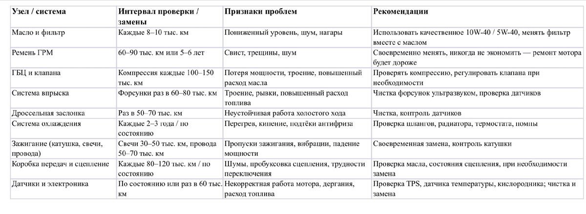 Этот мотор — как верный рабочий конь. Он не требует «космического» ухода, если следовать базовым правилам: замена масла, проверка ГРМ, контроль форсунок и охлаждения. Своевременная диагностика и профилактика превращают его в настоящего «миллионника» — мотор, который легко проходит сотни тысяч километров и практически не ломается.