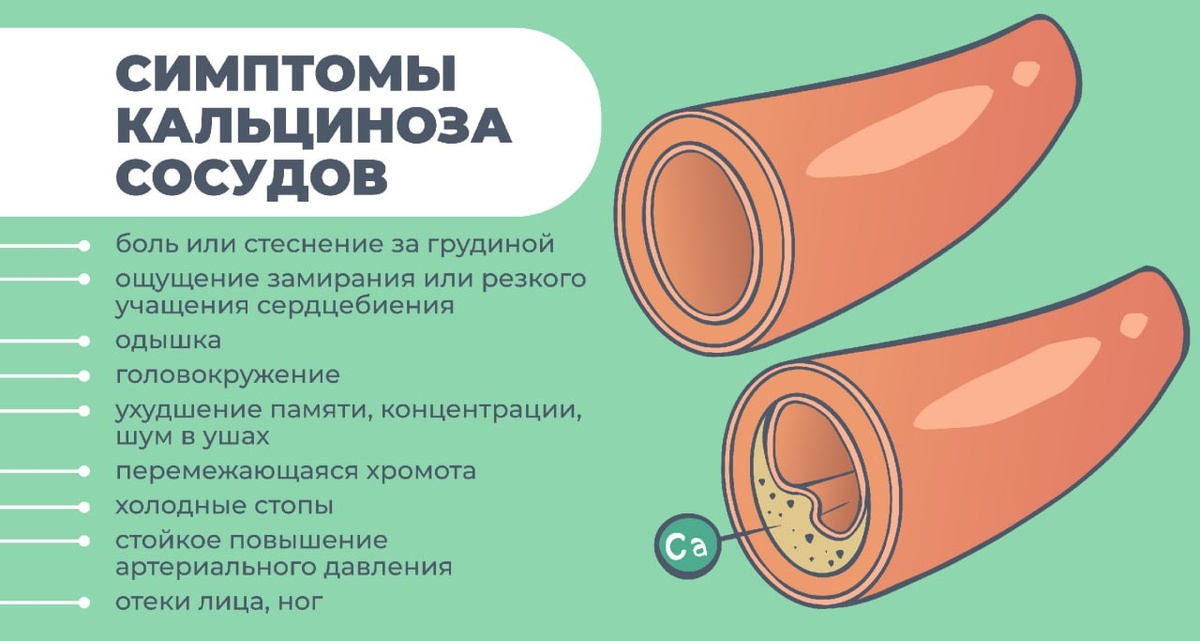 🫀 Кальциноз сосудов — угроза, о которой мало говорят Тихий враг, который годами разрушает сосуды, повышая риск инфаркта и инсульта. Без боли, без симптомов — до тех пор, пока не становится поздно. Что происходит: Кальций, который должен укреплять кости и зубы, по разным причинам начинает откладываться в стенках артерий. Сосуды становятся жёсткими, хрупкими, теряют эластичность. Сердцу приходится работать с перегрузкой. Почему это случается: 🔹 атеросклероз и диабет повреждают сосуды; 🔹 хронические болезни почек нарушают минеральный обмен; 🔹 избыток витамина D и дефицит витамина K сбивают регуляцию кальция; 🔹 гормональные изменения в менопаузу, ожирение, генетика и возраст усиливают процесс. Как проявляется: Часто никак — пока не нарушится кровоток. ⚠️ Первые сигналы: боль или стеснение за грудиной, одышка, головокружение, шум в ушах, перемежающаяся хромота, холодные стопы, отёки, стойкое давление. Как диагностируют: 🩻 КТ и УЗИ сосудов показывают кальцинаты и оценивают их степ