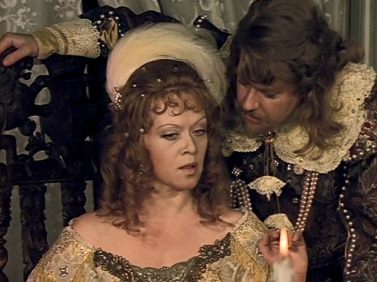 Опять же, такой легкомысленный поступок (подарить подвески возлюбленному при имеющемся муже) еще можно допустить от 24-летней молодой женщины, но играет-то ее 44-летняя Алиса Фрейндлих. Вот солидная, уважаемая Людмила Прокофьевна - это её роль. А тут 24-летняя королева.