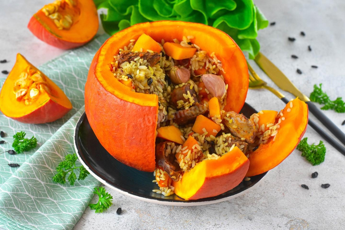 Осень — время, когда кухня наполняется ароматами пряностей, запечённых овощей и уютных блюд, согревающих даже в самые холодные дни. Одним из таких блюд по праву считается плов, приготовленный в тыкве. Он не только вкусный, но и эффектный: подаётся прямо в ароматной «оранжевой кастрюле», которая становится частью самого блюда. Это блюдо объединяет в себе всё лучшее — сладость тыквы, насыщенность риса и аромат специй. А главное — готовится просто, но выглядит как настоящий шедевр. В восточных странах плов в тыкве считается праздничным блюдом. Он символизирует изобилие и семейное тепло, а сама тыква — плодородие и уют. В старинных рецептах её нередко заменяли дыней, если сезон позволял, а специи подбирали индивидуально — по настроению и случаю. Плов в тыкве, приготовленный в духовке, — это кулинарная поэзия осени. Сочетание сладковатой тыквы, рассыпчатого риса и ароматных специй создает неповторимую гармонию вкусов. Такое блюдо одинаково уместно и на семейном ужине, и на праздничном столе
