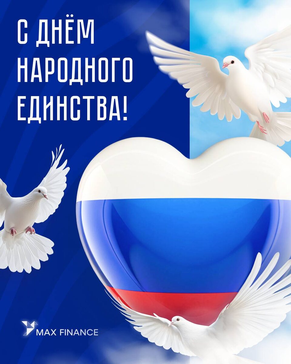 Дорогие предприниматели! Поздравляем вас с Днём народного единства 🎉 Желаем вам уверенности и стабильности в бизнесе, сплочённой команды и надежных партнеров. Мы едины с вами в достижении ваших целей 🤝 Ваш Макс Финанс