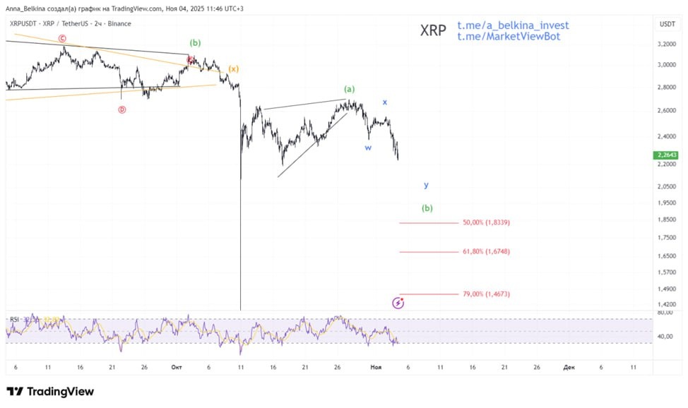 #XRP Движение развивается в восходящей конечной диагонали в волне [iii], в которой все волны могут усложняться до двойных зигзагов. Волна [iii] принимает пока вид обычного зигзага, в котором волна (a) of [iii] – начальная диагональ, сейчас формируется коррекционная (b) of [iii]. Эта волна может принять любую форму коррекции и откатить на любую Фибу. После завершения отката ожидаю увидеть восходящую (с) of [iii]. Не является ИИР 💪 БОЛЬШЕ разметок в Закрытом канале: Бот Закрытого Канала (подписаться из-за границы, пишите личным сообщением) В этом посте есть большое видео, которое не загрузилось в Дзен. Откройте оригинал поста в телеграме, чтобы его посмотреть