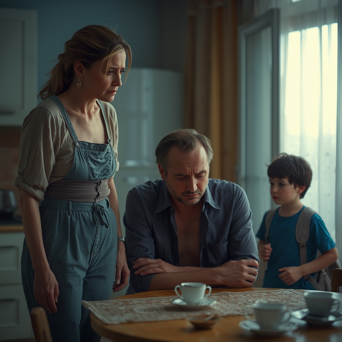 Он прошёл на кухню, сел за стол. Я села напротив. Между нами легло молчание, тяжёлое, как камень.