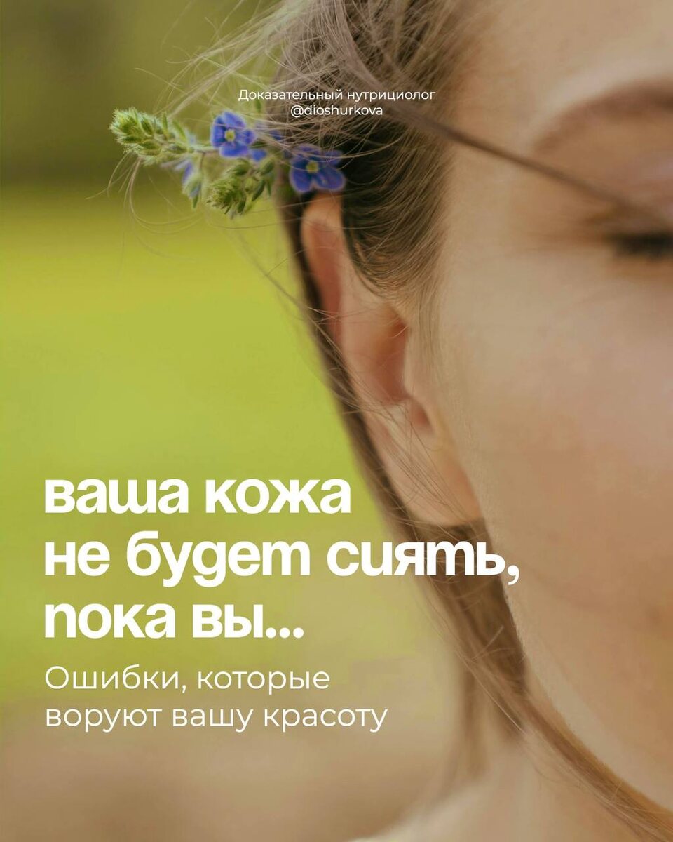 Дорогой уход не справляется, а кожа продолжает огорчать? 💔 Часто причина — в наших повседневных привычках, о которых мы даже не задумываемся. ➡️ Высыпания, тусклость, ранние морщины — это сигналы организма, которые стоит научиться расшифровывать. Почему питание так влияет на кожу? ✅Наша кожа — это индикатор внутреннего состояния. Воспаления в кишечнике, дефицит нутриентов, скачки сахара в крови — всё это мгновенно отражается на лице. Пока мы маскируем последствия тональным кремом, причина продолжает усугубляться. Что делать? 1️⃣ Начните с анализа — какие из этих ошибок совершаете именно вы? 2️⃣ Не боритесь с симптомами — ищите корень проблемы в питании и образе жизни. 3️⃣ Доверьтесь эксперту — я помогу составить персонализированный план для восстановления кожи изнутри. Готова помочь вам с индивидуальным решением! На бесплатной консультации мы: ⏺️ Проанализируем ваш рацион и образ жизни ⏺️ Выявим триггеры воспалений ⏺️ Составим первый шаг к чистой и сияющей коже Для записи на