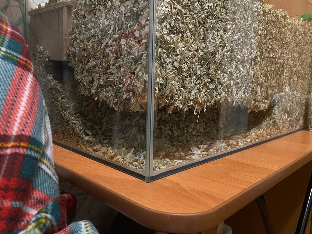 😍Красивущая угловая нора песчанок в аквариуме. Слой 25 см, хозяйка Hikari Saikou. Обращаем внимание на БОЛЬШОЕ количество сена в смеси с опилками, которое обеспечивает удержание нор. Сена песчанкам нужна не госточка, а целые пачки! При заполнении жилища сено составляет около 50% наполнителя и дальше раз в несколько дней докладываем дополнительные охапки по мере измельчения предыдущих. На сено не скупимся. Альбом норок песчанок https://vk.com/album-206041176_288165598 Присылайте свои фотографии норок песчанок с указанием глубины слоя.