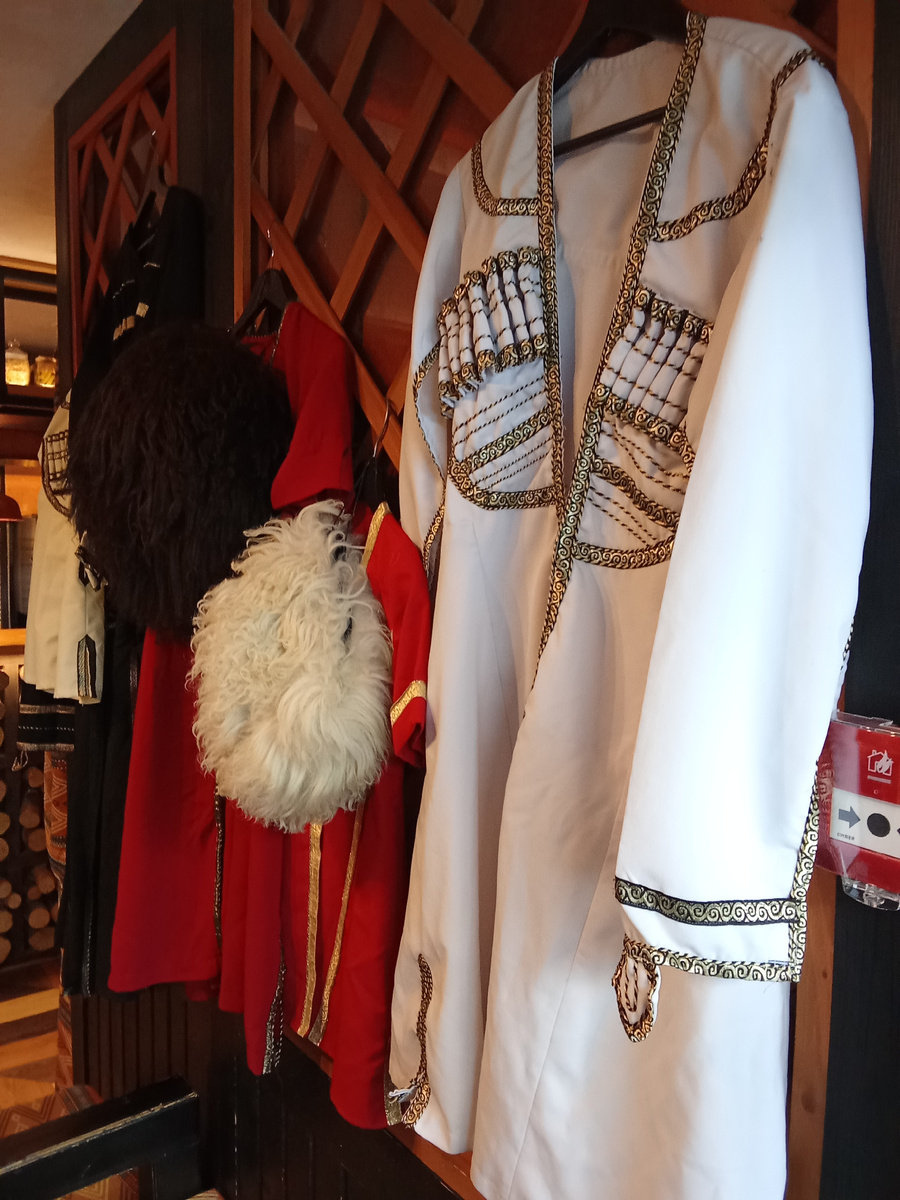 Это то, что я могу порекомендовать к посещению. На входе можно увидеть красивые костюмы. Рассказывают, как правильно есть хинкали. В ресторане звучит приятная грузинская музыка фоном. Вообще хинкали я люблю. Ела я их во многих местах. Не везде они вкусные. Тут они отличные на вкус. Обстановка красивая Чай подают интересным вариантом. На подставке, под которой горит свечка и греет чай. Чай уже заварен. Чуть правее лежат в стаканчике листья, на которых заваривали этот чай. Официант объяснил, что при желании их можно заварить повторно. Хинкали подаются вот так. И они вкусные. Реально вкусный и качественный фарш, много бульона внутри. Это то место, куда стоит ходить. Я ознакомилась также с отзывами на это заведение. Некоторые посетители не довольны тем, что официанты не представляются. Да, это так. Сегодня официанты мне тоже не представлялись. Но могу сказать, что мне это не важно. Важно, что я нашла хинкальную, где меня кормят вкусно. К посещению любителям грузинской кухни рекоме