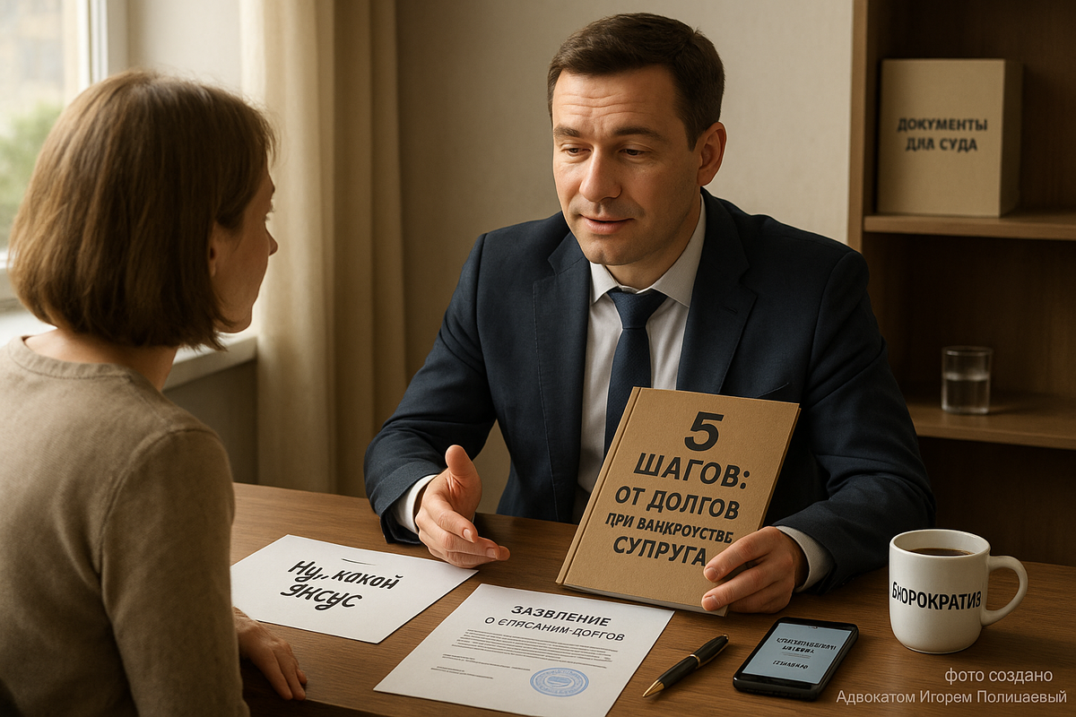 Шаг 5. Закрыть вопрос с погашением. После завершения дела личные обязательства второго супруга погашаются за счет его имущества. Бюджет семьи меняется — так устроено. Задача адвоката — заранее объяснить, какие доходы защищены, как корректно выстроить платежи, как общаться с банком и приставами. Если супруг готов идти на реструктуризацию без банкротства — тоже вариант: переговоры, изменение графика, рефинансирование. Но если цифры не сходятся, не мучайте себя — избавление от долгов через банкротство часто оказывается единственным честным выходом.