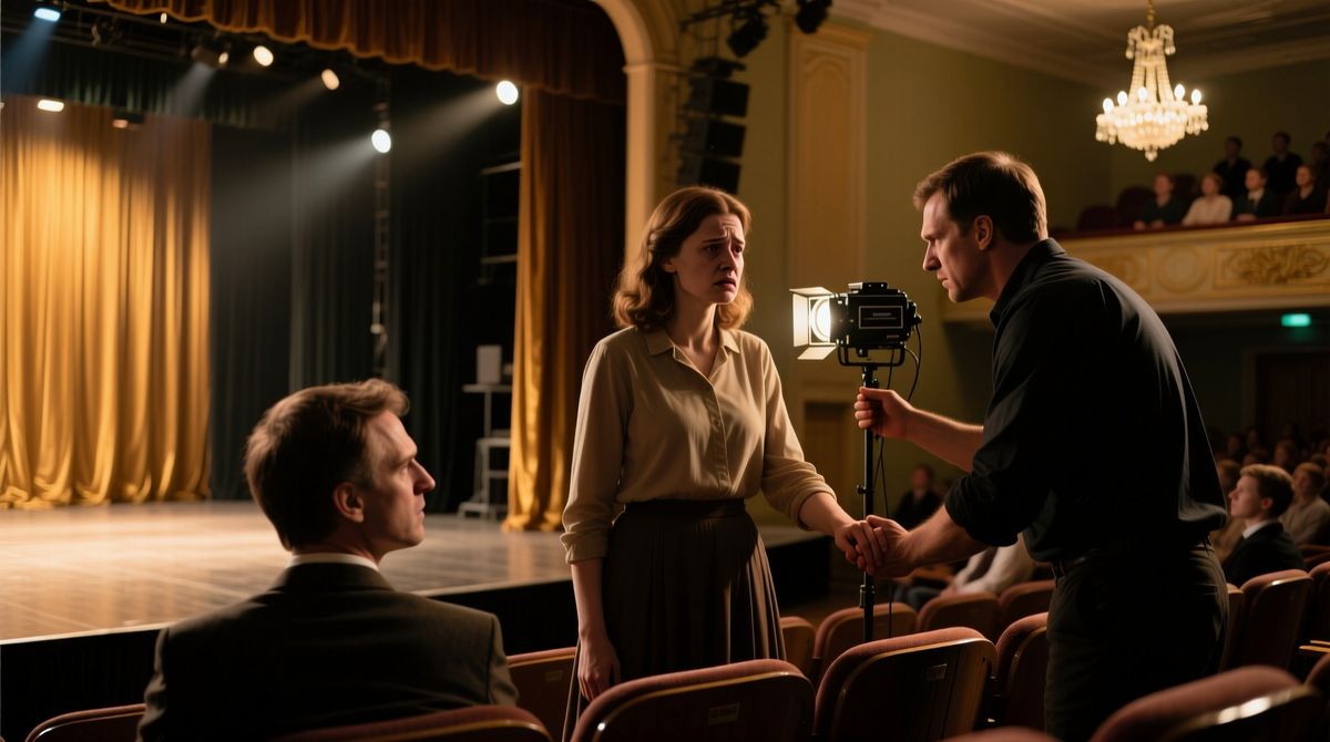 После занятий они остались вдвоём — Леонид предложил посмотреть образцы для вечерних сцен, Мария молча согласилась. В полумраке сцены она чувствовала себя иначе, чем дома, чем в школе, чем в семье. Здесь она была героиней не чужого сценария, а своей внутренней драмы.