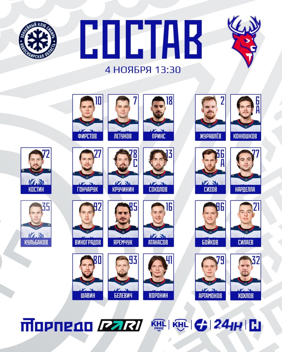 Илья Хохлов дебютирует за «Торпедо»! 🔥 Это единственное изменение в составе по сравнению с матчем в Екатеринбурге 💪 Прямые трансляции: 📺 KHL Prime, KHL, НН 24, ННТВ 🔥 https://hd.kinopoisk.ru/sport/event/m729618/