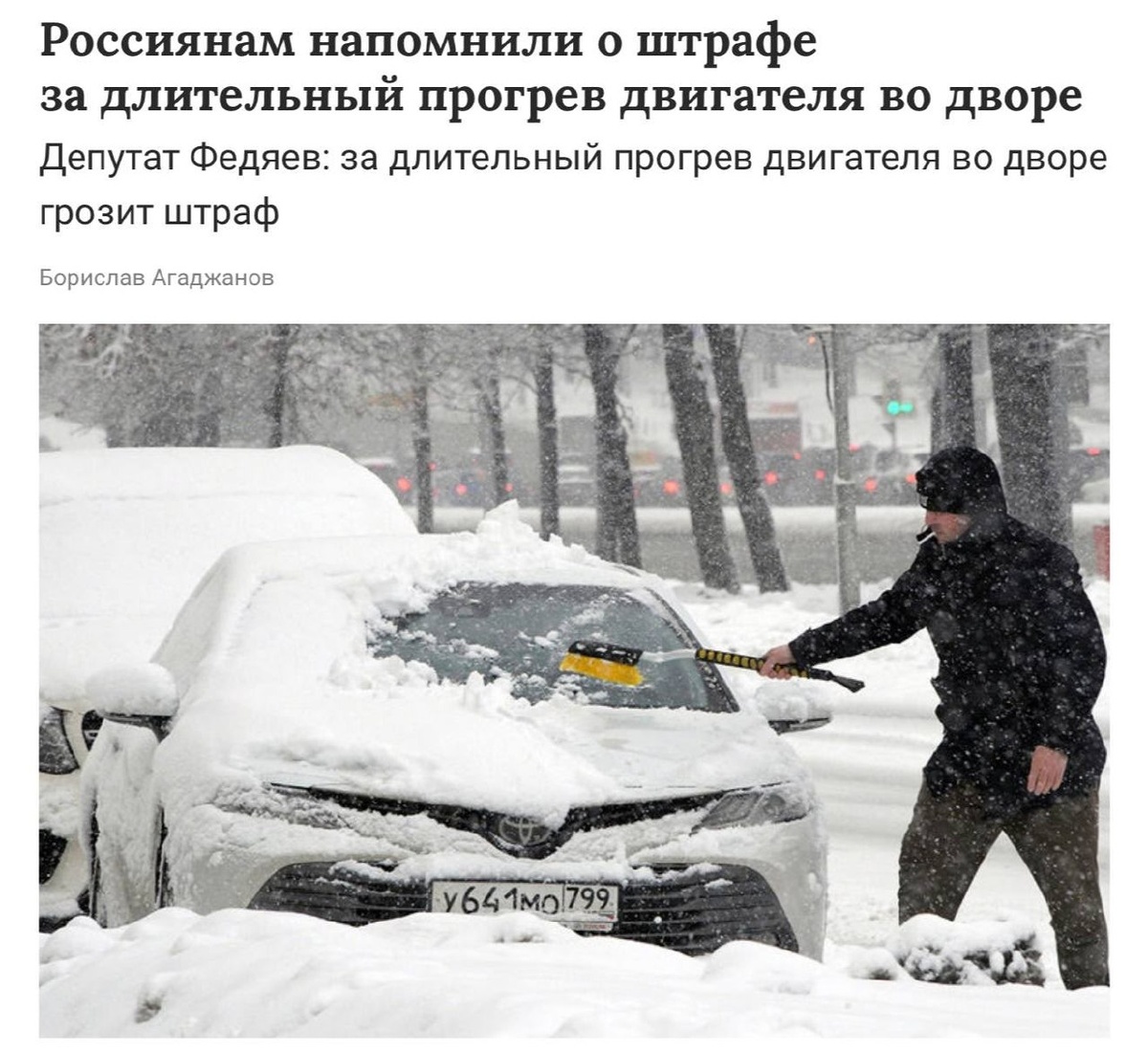 В Государственной Думе сообщили, что автовладельцев ожидает штраф в размере 3 тысяч рублей за продолжительный прогрев автомобиля во дворе