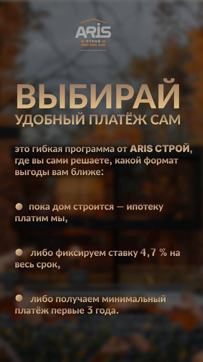 🏡 Новая акция от ARIS СТРОЙ — “Выбери удобный платёж сам