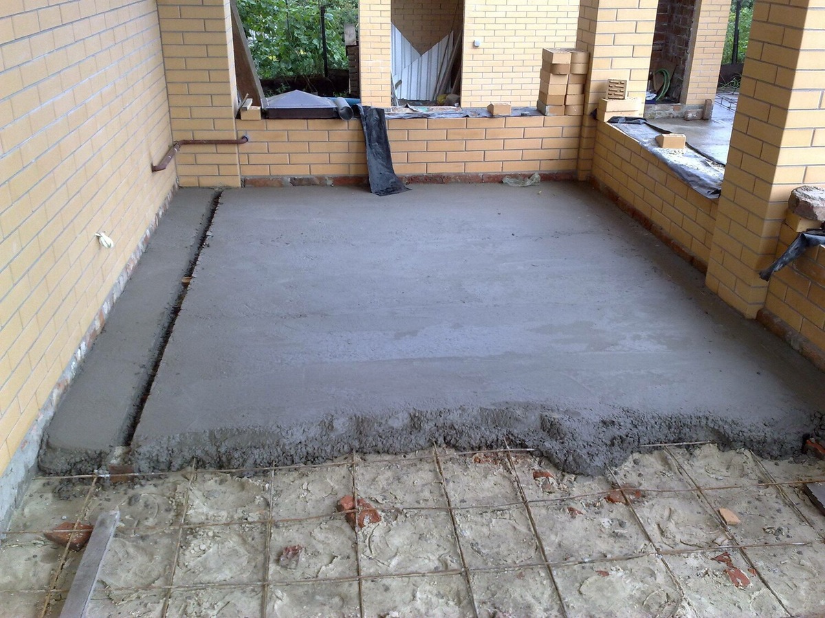 - Черновая стяжка. Заливаете 7-10 см тощего бетона (Б7,5). Он дешевле. Это и будет ваш итоговый пол.