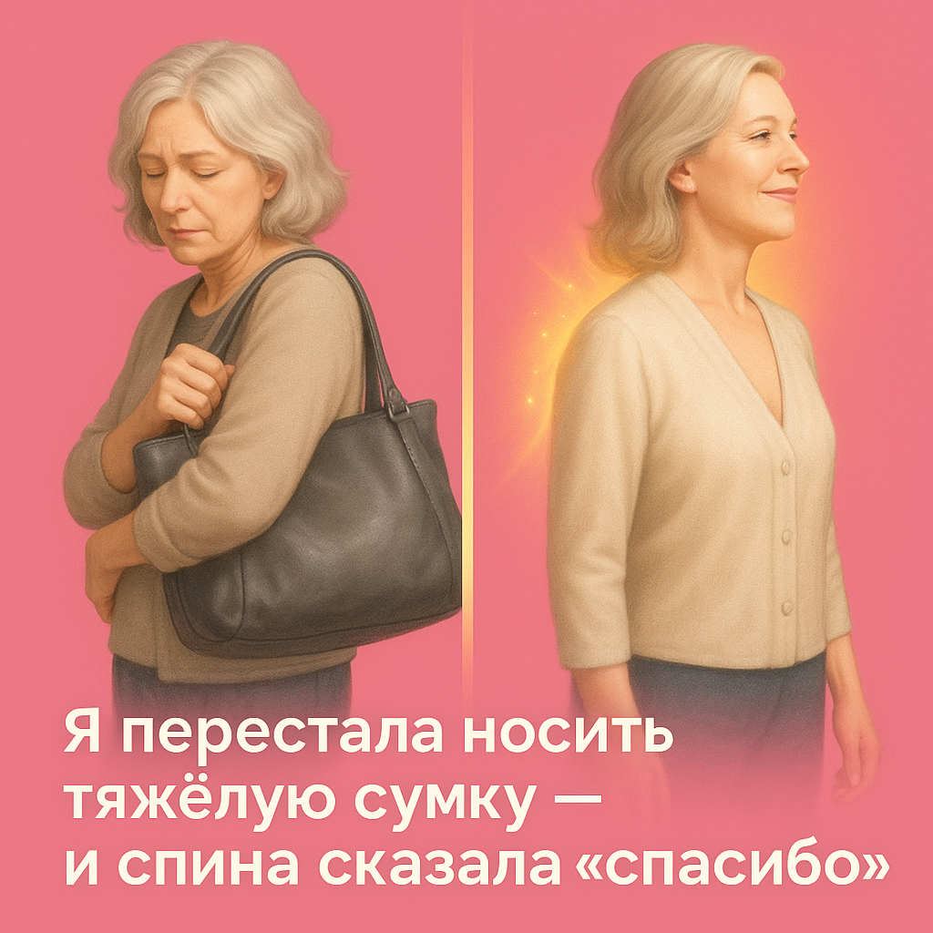Ещё пару лет назад я просыпалась с чувством, будто кто-то ночью положил на меня мешок цемента. Спина ныла, плечи будто каменные, голова тяжёлая. Я грешила на возраст, сидячую работу, недосып. Но однажды поняла: всё началось не из-за дивана или компьютера, а… из-за моей сумки. У меня всегда была “та самая” сумка. Большая, кожаная, с десятком отделений. Там лежало всё: кошелёк, ключи, зонт, косметичка, бутылка воды, зарядка, документы, даже аптечка. Иногда сумка весила 5 килограммов — как рюкзак школьника! Я таскала её на одном и том же плече, годами. Иногда оно немело, иногда болело, но я не придавала значения. «Ну что, женщина должна быть готова ко всему!» — смеялась я. А тело, оказывается, терпело молча — до поры. Однажды утром я не смогла нагнуться, чтобы надеть сапоги. Боль прострелила от лопатки до поясницы. Я замерла и подумала: “Вот оно — старость.” Пошла к врачу. Он внимательно выслушал и спросил: — На каком плече вы носите сумку?