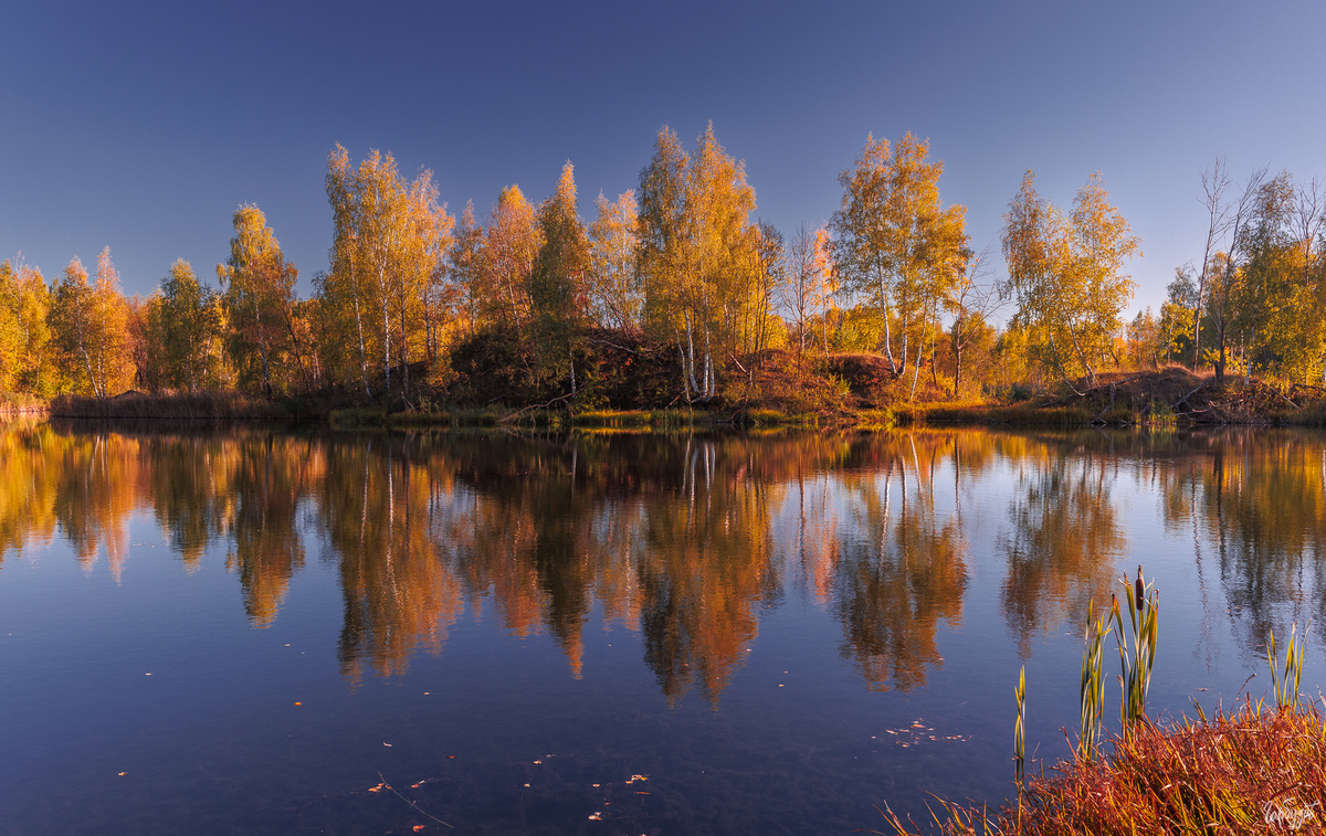 Недалеко от знаменитых Романцевских гор, между перелесками и заброшенными дорогами, спрятаны старые карьеры в Люторичах. Когда-то здесь добывали глину и уголь, а теперь это место стало настоящим природным заповедником без табличек и заборов — диким, тихим и удивительно красивым. Осенью Люторичи преображаются особенно сильно. Солнечные лучи ложатся мягко, скользят по холмам и отражаются в спокойной воде, где огненные кроны смешиваются с глубоким синим небом. Здесь всё держится на контрастах: гладкая поверхность воды — и треснувшая глинистая почва под ногами, мимолётная хрупкость осеннего листа — и неподвижность отвалов, напоминающих застывшие волны. И в этом сочетании — особая гармония. С каждым годом природа всё настойчивее возвращает себе эти земли. На промышленных шрамах уже выросли молодые сосны и берёзы, в воздухе пахнет сыростью, травой, грибами и чем-то очень живым. Стоя здесь, посреди этой тихой осени, невольно думаешь: природа всегда находит способ всё исправить.