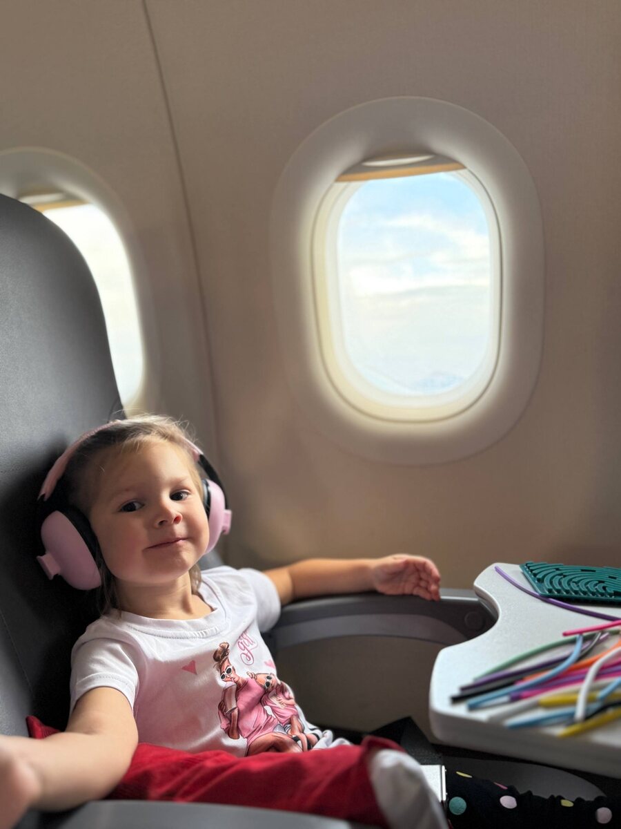 🎧 Шумоподавляющие наушники для детей — must-have, особенно если в самолёте много шума. Нашей девочке удалось поспать спокойно.