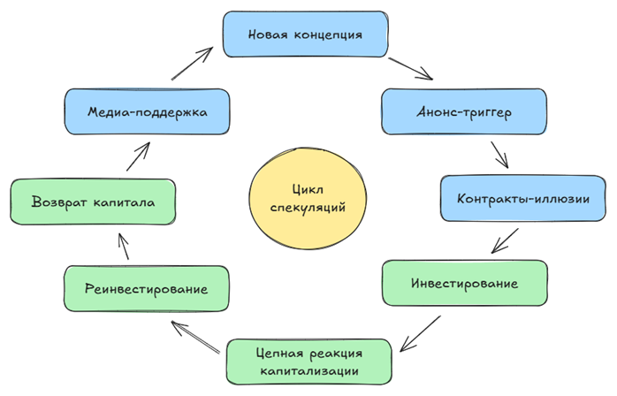 Это можно назвать экономической моделью замкнутого цикла спекулятивной капитализации, где включается: