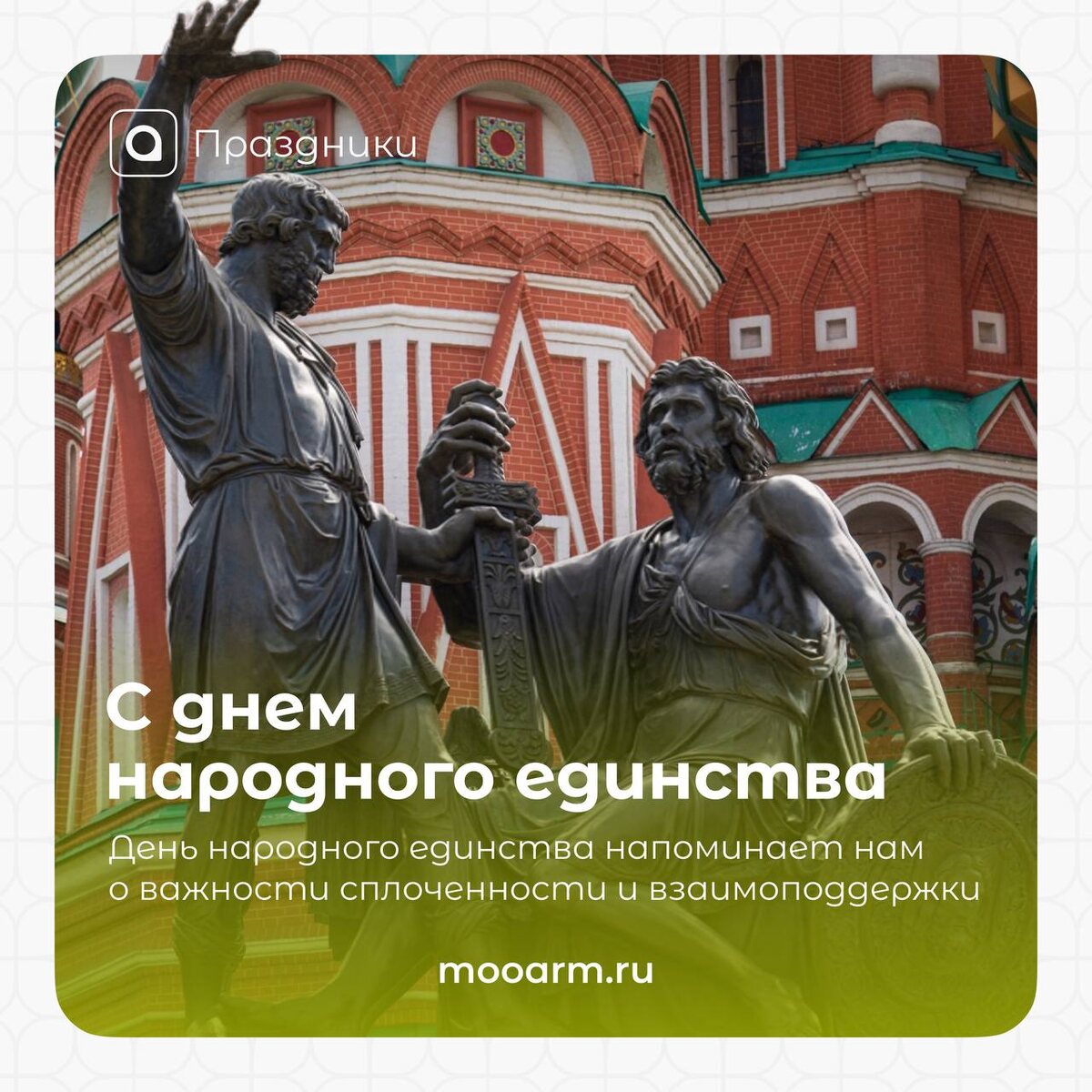 Сегодня мы отмечаем праздник, который напоминает о силе объединения, взаимопомощи и ответственности перед нашей страной! 🇷🇺 День народного единства — это повод вспомнить, что сила России всегда была в её людях, в готовности поддерживать друг друга и вместе создавать будущее. 🎉 Команда Ассоциации региональной молодежи поздравляет всех, кто ценит историю, уважает традиции и работает на благо России! mooarm.ru