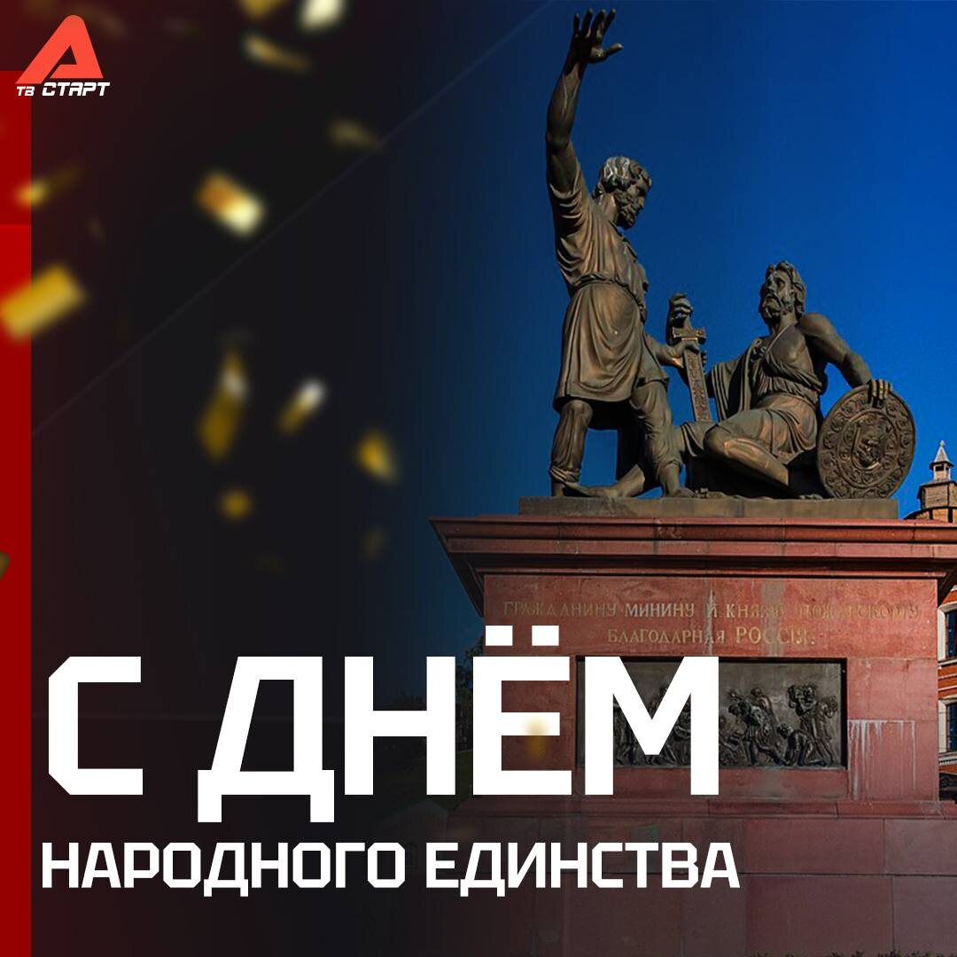 🎉 С Днём народного единства, друзья! Сегодня мы отмечаем важный праздник, который напоминает нам о силе нашего народа, о сплоченности и общих целях. В этот день ТВ СТАРТ желает всем вам крепкого здоровья, неиссякаемой энергии и спортивного духа! Вдохновляйтесь достижениями наших спортсменов и будьте едины в своей любви к спорту! 💪🏻