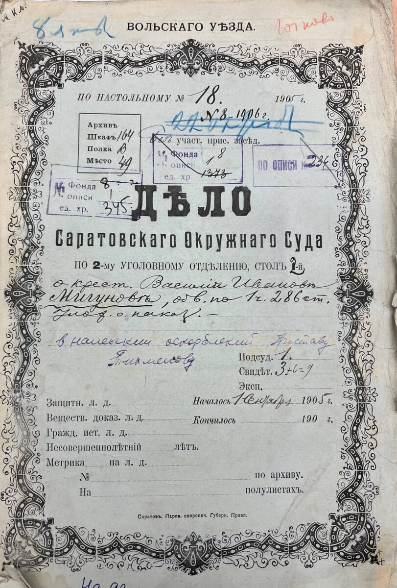 Дело 40-летнего Василия Мигунова из Вольского уезда доказывает, что за слова надо отвечать - иначе признают неразвитым и накажут рублем. Инцидент произошел 120 лет назад. Крестьянин Мигунов проживал в поселке Николаевском Барановской волости. В 1905 году он самовольно косил сено на лугах графини Шуваловой. Нарушение оформлял пристав первого стана Дмитрий Тихменев. Мигунов, судя по материалам дела, «нанес ему оскорбление на словах». Саратовский окружной суд признал крестьянина виновным и назначил арест на две недели. «В виду крайнего невежества обвиняемого Мигунова, его тупости и неразвитости означенное выше наказание понизить на две степени», - говорилось в приговоре. Позднее Саратовская судебная палата удовлетворила кассационную жалобу Мигунова и смягчила наказание: арест заменили на денежное взыскание в размере 15 рублей (в пересчете на сегодняшние деньги - около 122 тысяч).