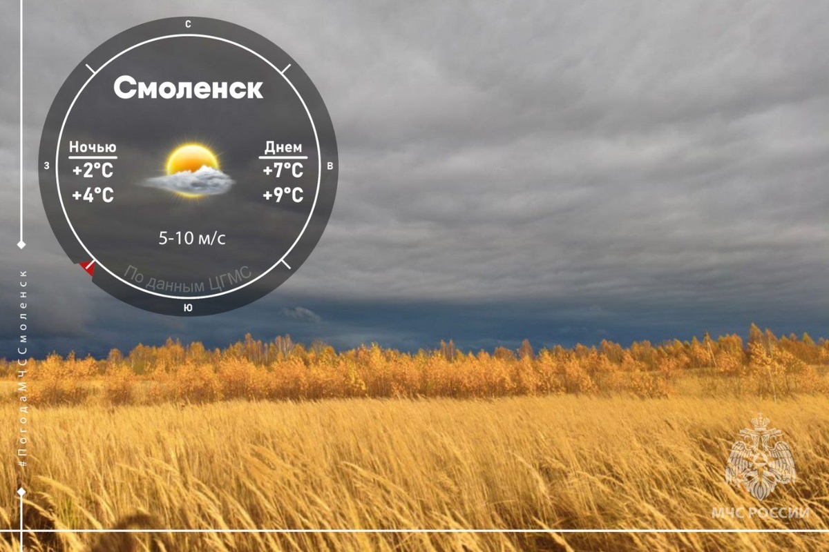 ☁️Хмурый месяц осени Завтра на территории Смоленской области ожидается облачная погода с прояснениями. Преимущественно без осадков. Ночь и утром местами ожидается туман. Ветер подует юго-западный со скоростью 5-10 м/с. 🌡Температура воздуха: по области: ночью 0°C …+5°C, днём +5°C …+10°C, в Смоленске: ночью +2°C …+4°C, днём +7°C…+9°C. Величина атмосферного давления 741 мм. рт. столба,будет постепенно расти. Обо всех изменениях в погоде смотри на сайте ❗️МЧС России напоминает о мерах безопасности при тумане: - на дорогах будь предельно внимателен; - за рулем соблюдай скоростной режим и дистанцию; - носи на одежде светоотражающие элементы. @ГУ МЧС России по Смоленской области #МЧСРоссии #ПогодаСмоленск Подписывайся на МЧС России в MAX | ВК