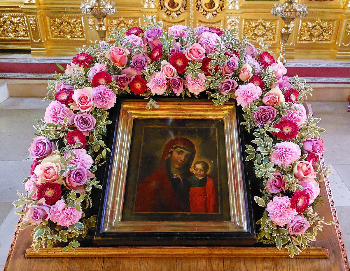 Благоукрашение иконы Казанской Божией Матери. Для храма иконы Божией Матери Неувядаемый цвет в Рублёво.