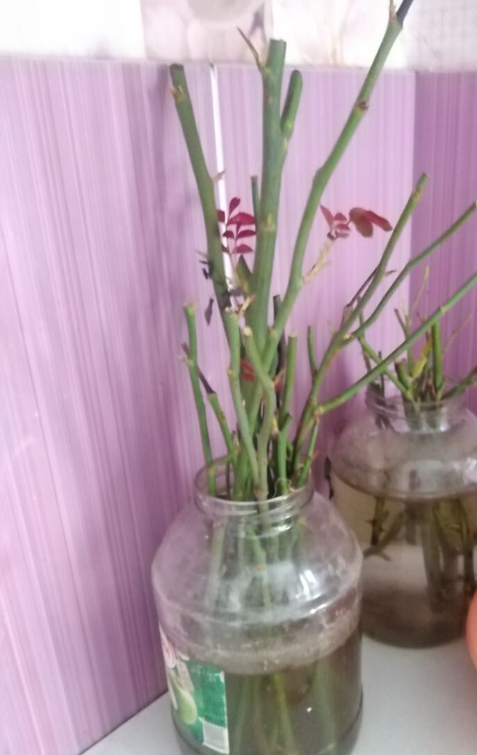 Всем привет! Я уже не раз упоминала, что хочу развести розы в большом количестве. Но купить новых саженцев в большом количестве мне не по карману. Поэтому я уже несколько раз пыталась их на черенковать и укоренить из тех саженцев, что у меня уже есть (даже один способ описывала здесь в Дзене). И даже снимала видео. И ДА!!! УРА!!! У МЕНЯ ЭТО ПОЛУЧИЛОСЬ. В прошлом году я сделала в сентябре обрезку кустов роз и все срезы поставила в воду (так мне подсказала одна моя коллега по работе, которая тоже обожает розы). Просто в банку с водой ставим черенки. Что могу сказать, процентов 10% только дали корни, а точнее только 5 черенков укоренились. Я осенью их поставила в воду, а где-то после новогодний каникул, начали появляться первые корешки. Я их не садила в землю в горшках, а только подливала воду, которую выпивали розы и всё. Не добавляла удобрения, корневин, ни чего. Весной, когда возвратные заморозки закончились, земля хорошо прогрелась я их высадила в отрытый грунт. И они медленно