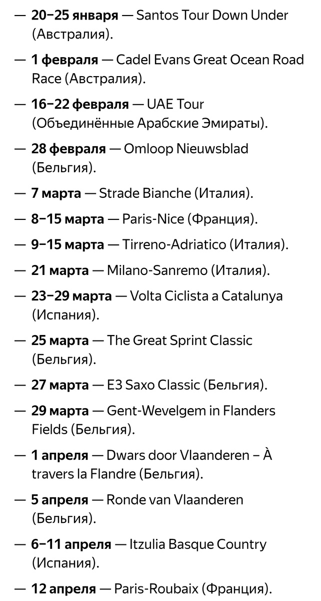 Новый сезон велогонок предвещает нам много интересных событий :) Произошло много изменений в командах, ратации (в том числе самыми именитыми спортсменами), смены команд велогонщиками. Некоторые команды перестали существовать из-за отсутствия поддержки со стороны спонсоров. Результаты всего этого мы увидим собственными глазами :)